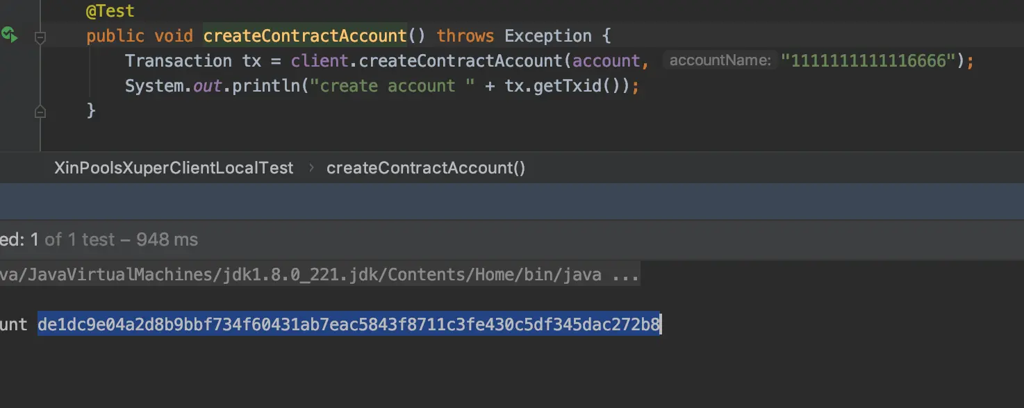 通过java sdk 连接节点1 创建合约账户 XC1111111111116666@xuper