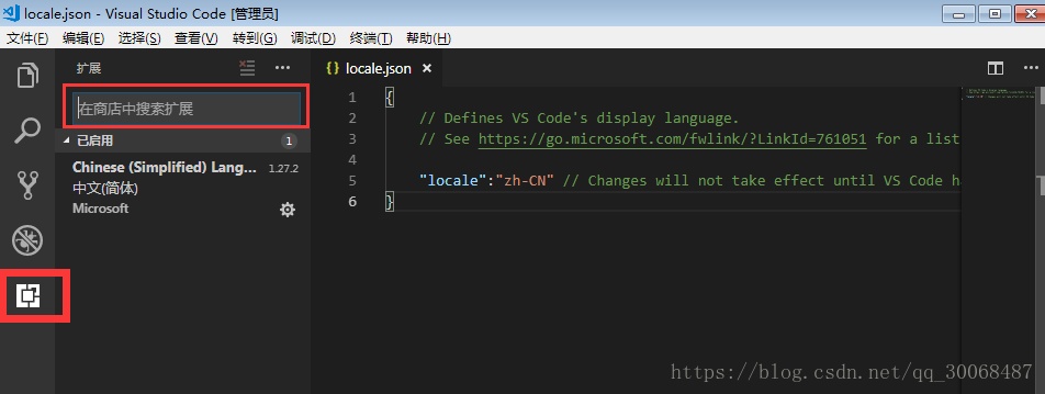 在上图中商店中搜索Chinese(Simplied) Lang,安装即可。