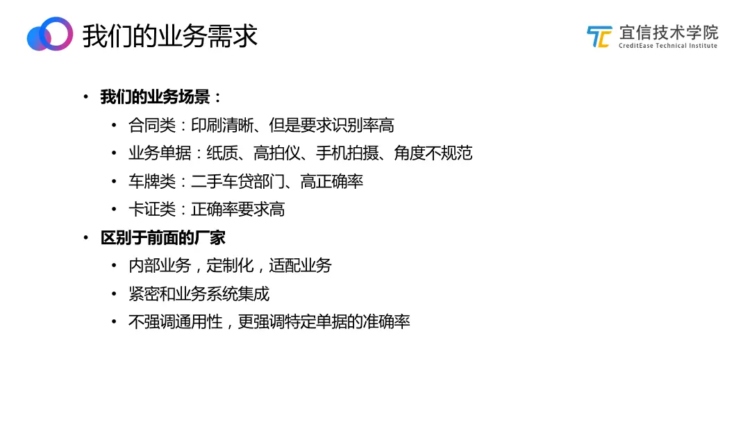 满足业务是第一需要,不同于大厂,对外服务API,要求大并发那么强,多样性品类完备,我们更强调单品要做到尽量达到业务要求,更强调定制化,可以分布走,业务上可以给反馈不断改进。