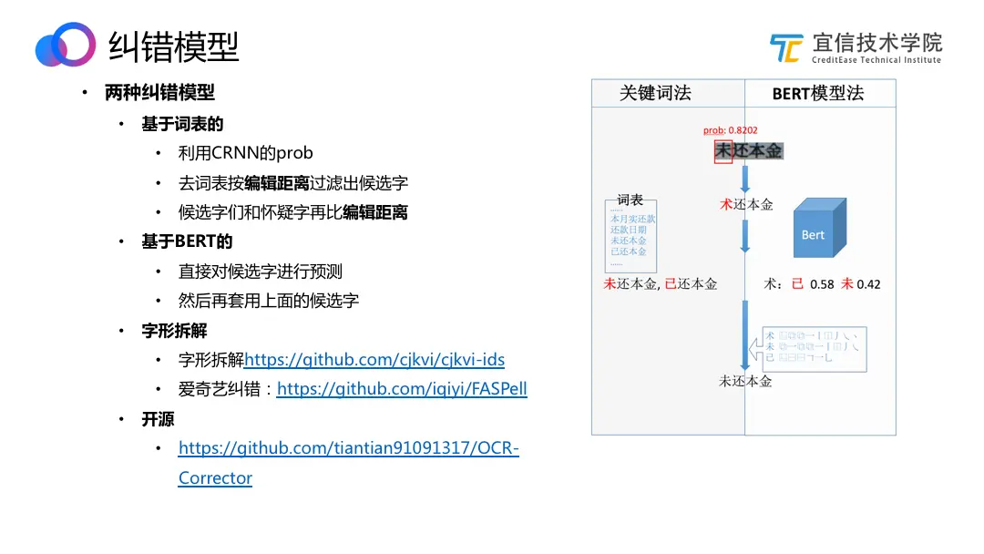 因为有crnn的prob,所以纠错就有的放矢,把怀疑的字,替换成某个字,