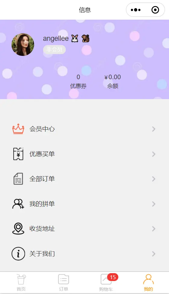 | 我的 | 会员中心 | 优惠买单 | 收货地址 |
