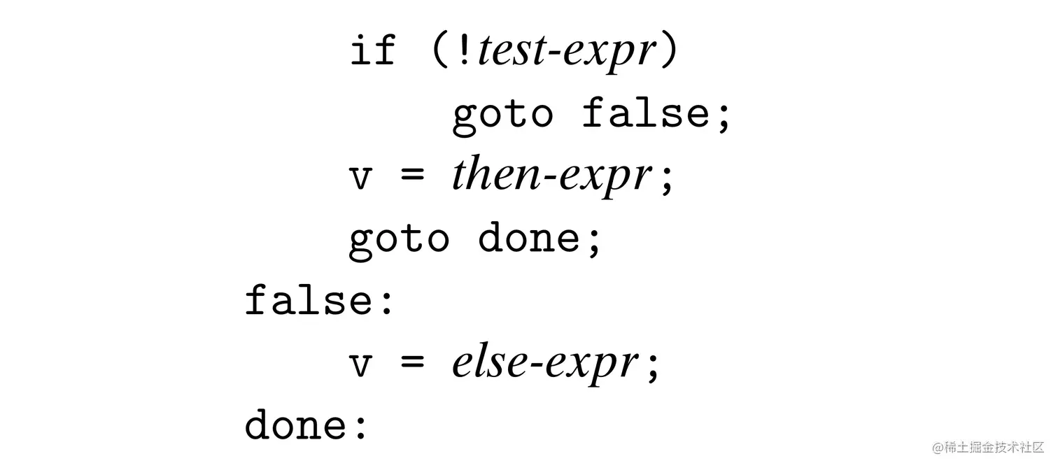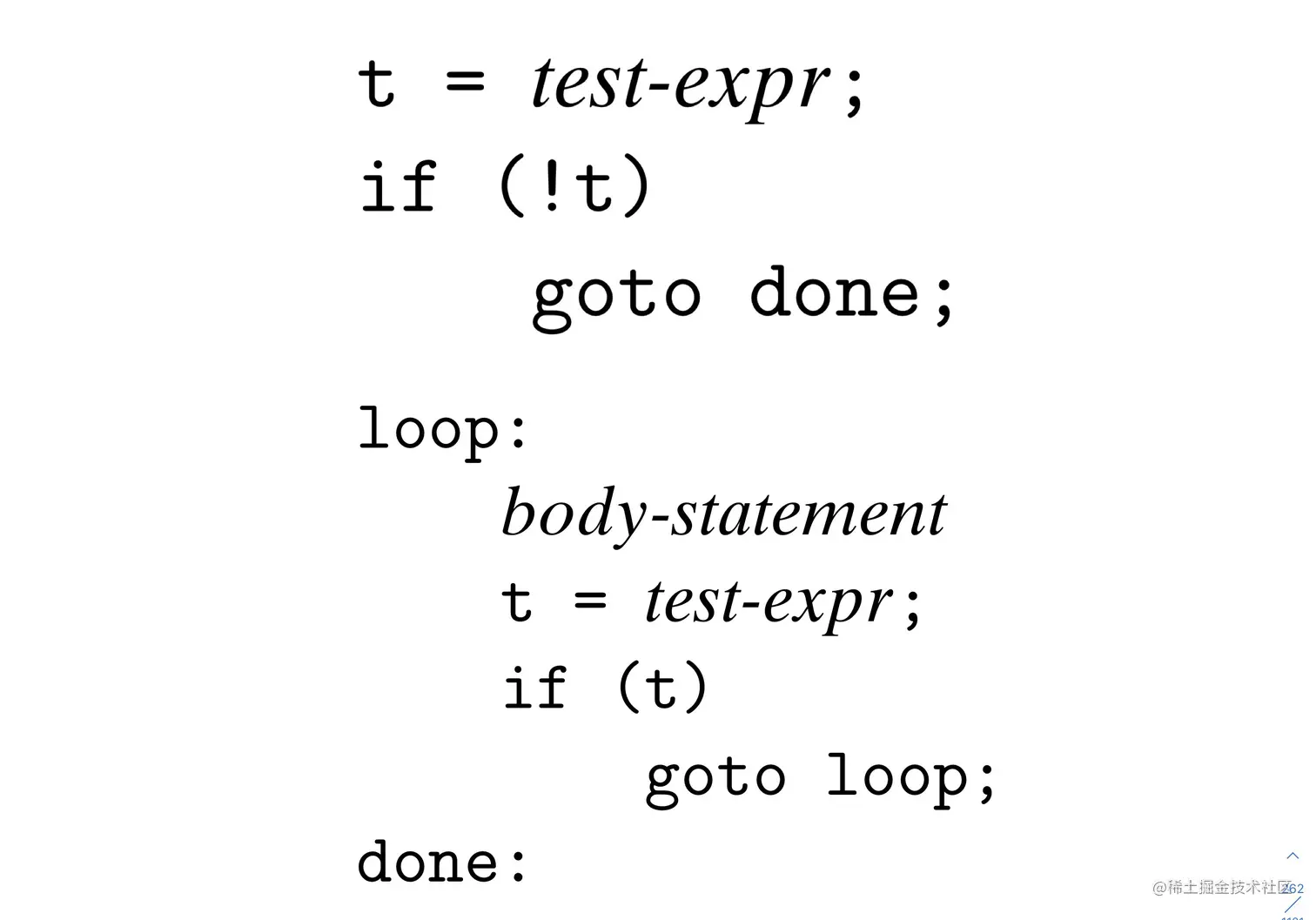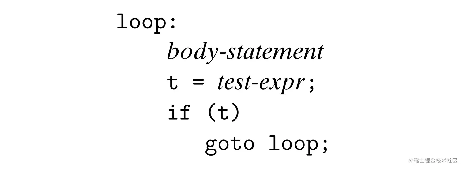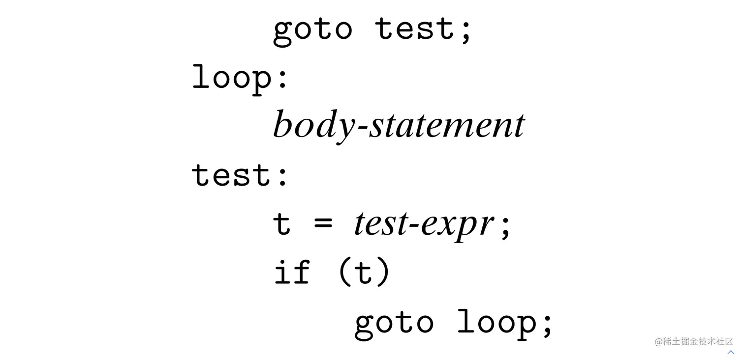 也就是说,汇编器会为和产生各自的代码块,它会插入有条件和无条件分支,以保证正确的执行。有条件的就是if那里,goto都是无条件的。