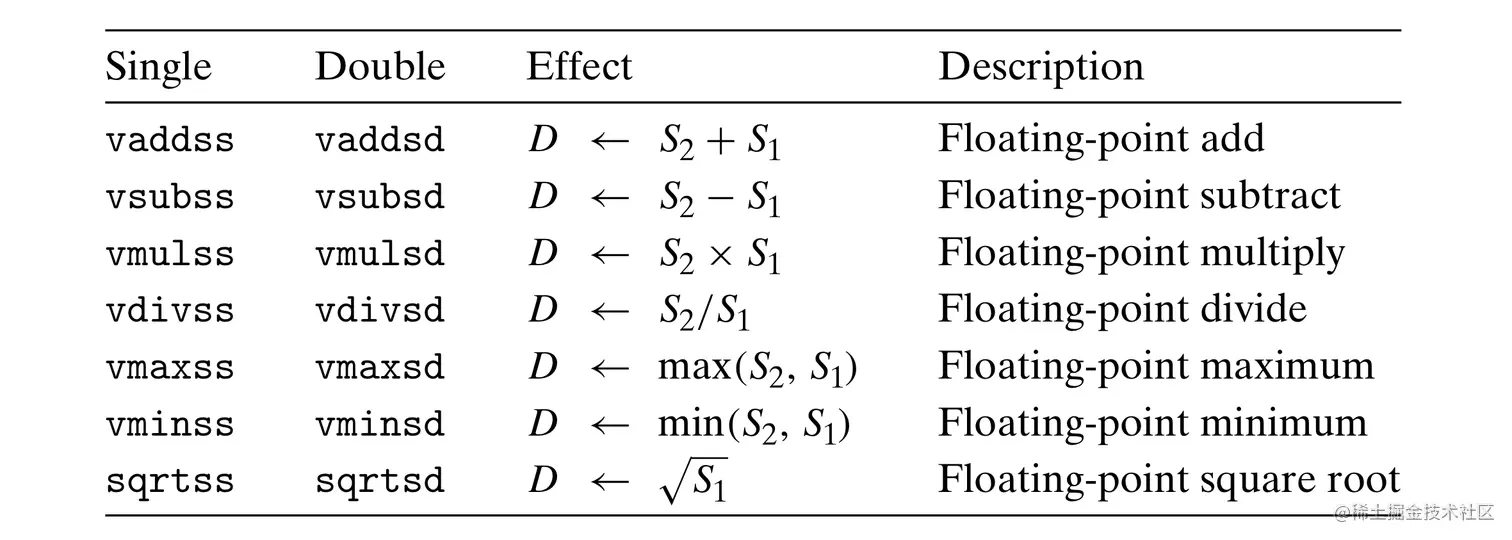其中,参数S2必须在XMM寄存器中,而S1既可以在XMM寄存器中,也可以在内存中。