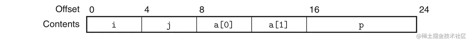 要想产生对一个结构内部对象的引用,只要把结构指针加上该元素在内存字段中的偏移量即可。结构体各个字段的选取完全是在编译时处理的,机器代码不包含任何有关字段声明或字段名字的信息。