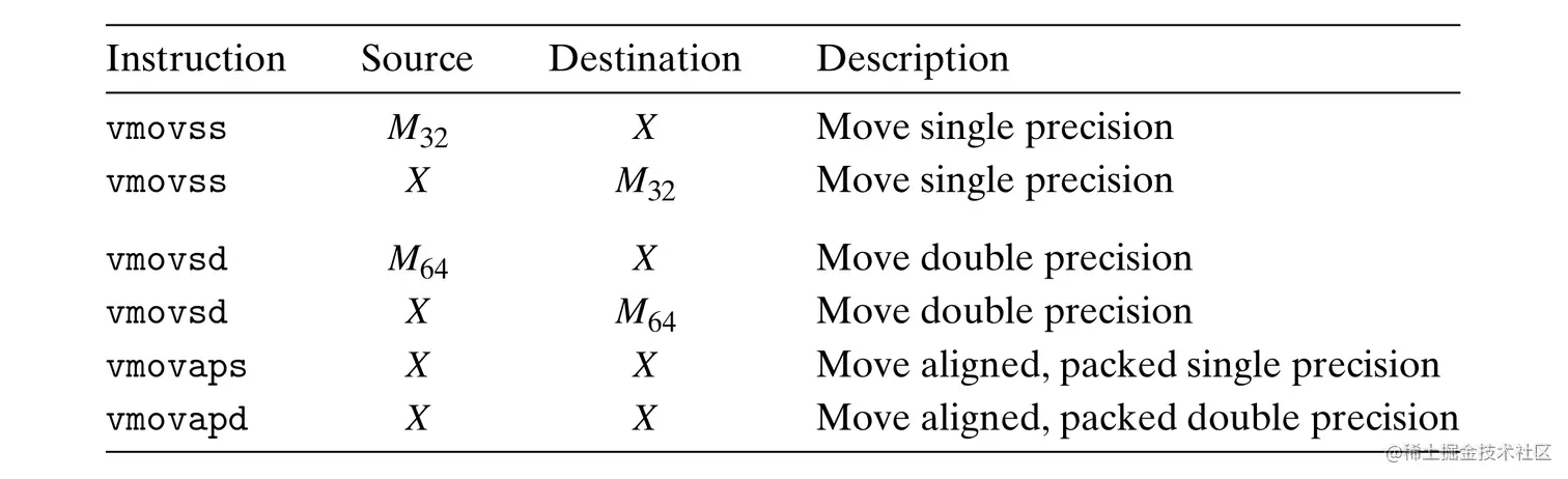 在AVX中,没法使用立即数作为操作数,必须把常数放进栈或寄存器中来进行操作,这和整数运算不同。