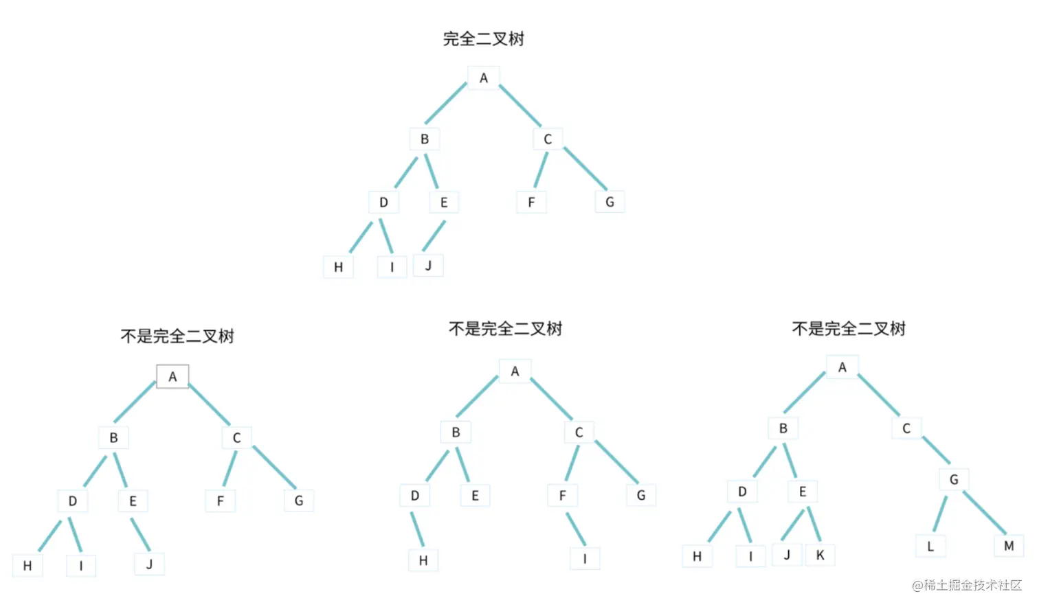 完全二叉树与不是完全二叉树的区分比较难,所以对比下图看看。