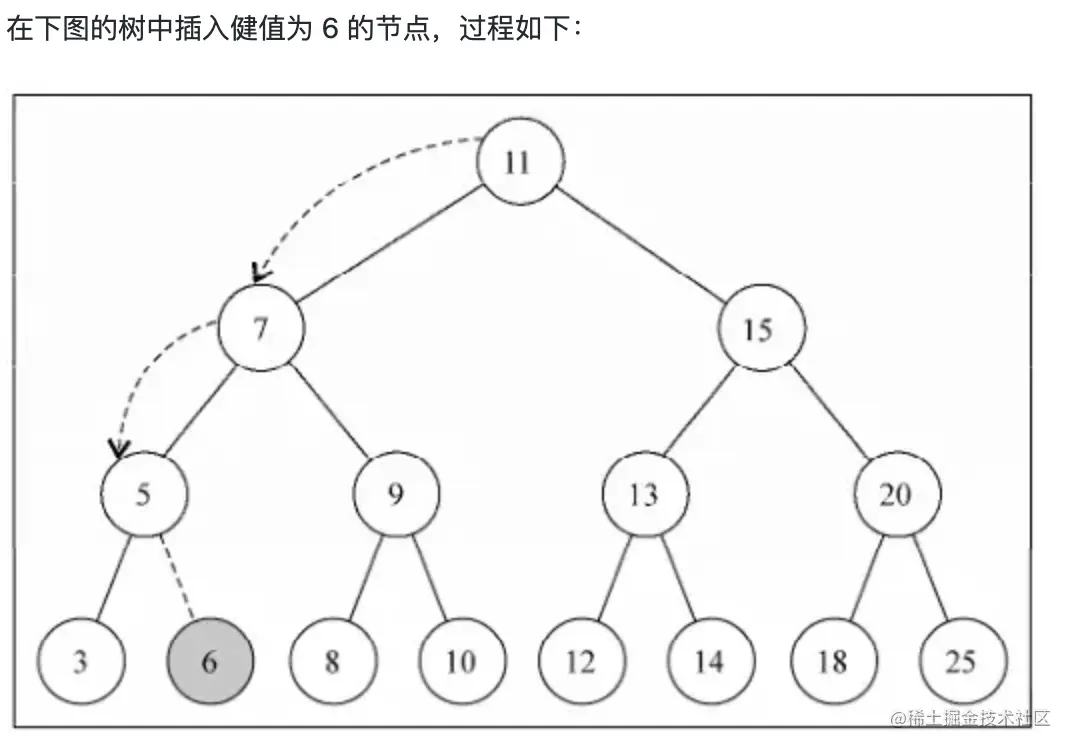 // 遍历树,将要搜索的值与遍历到的节点比较,如果前者大于后者,则递归遍历右侧子节点,反之,则递归遍历左侧子节点。