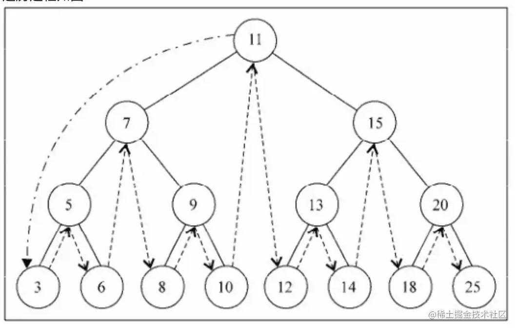 // 因此给定一颗树或其子树,只需要一直向左节点遍历到底就行了。