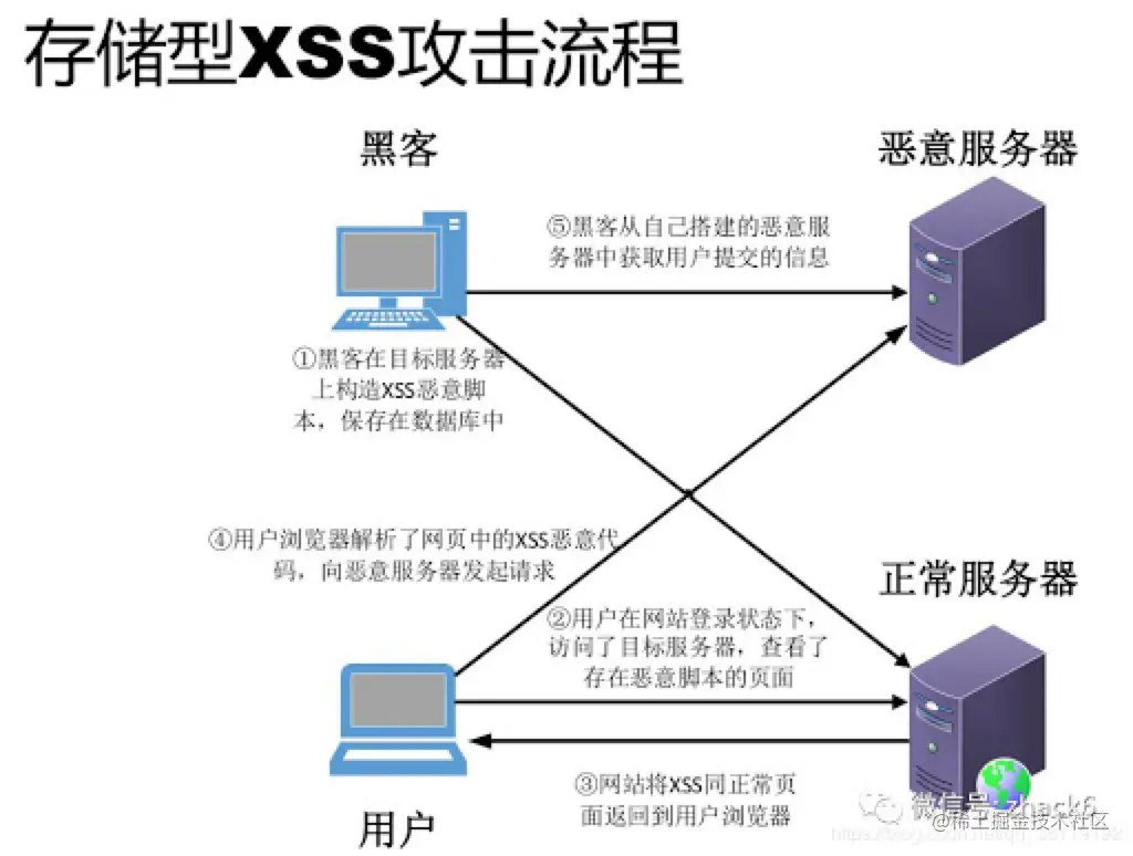 持久型XSS漏洞,一般存在于表单提交等交互功能,如文章留言,提交文本信息等,黑客利用的XSS漏洞,将攻击脚本经正常功能提交进入数据库持久保存,当前端页面获得后端从数据库中读出的注入代码时,恰好将其渲染执行。