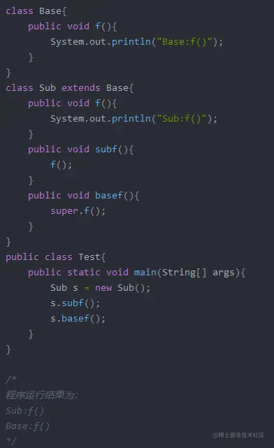 覆盖父类的方法或成员变量,要想访问父类的方法或成员变量只能通过super关键字来访问,