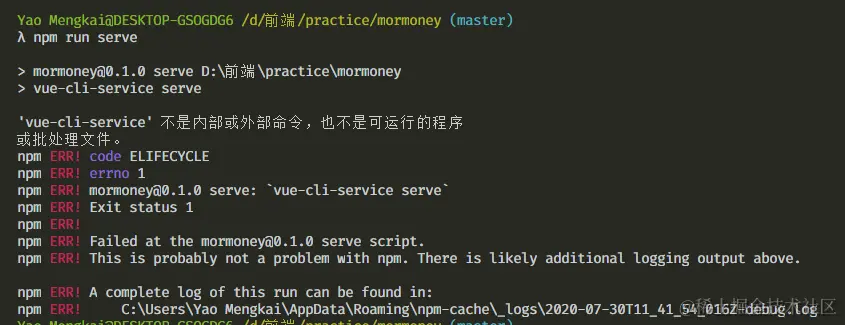 VUE小凯记账(1) 出现无法npm run serve _Phonon 2020-07-31 184 阅读1分钟 在添加svg-sprite-loader后重启,发现终端出现vue-cli-service不是内部或外部命令,也不是可运行的程序的问题 在确保了vue-cli安装了的前提下,重新使用: npm install //or cnpm install