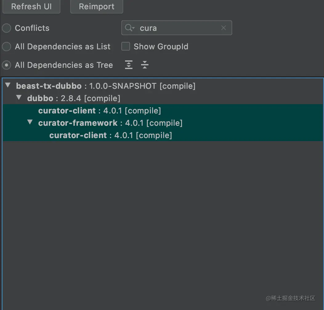 用这个插件能很好的显示出项目中所有的依赖树和冲突