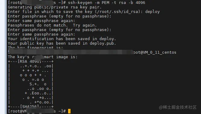- 首先要在服务器上生成ssh密钥,通过命令ssh-keygen -t rsa -b, 如果不知道改命令是什么意思,可以自行Google。