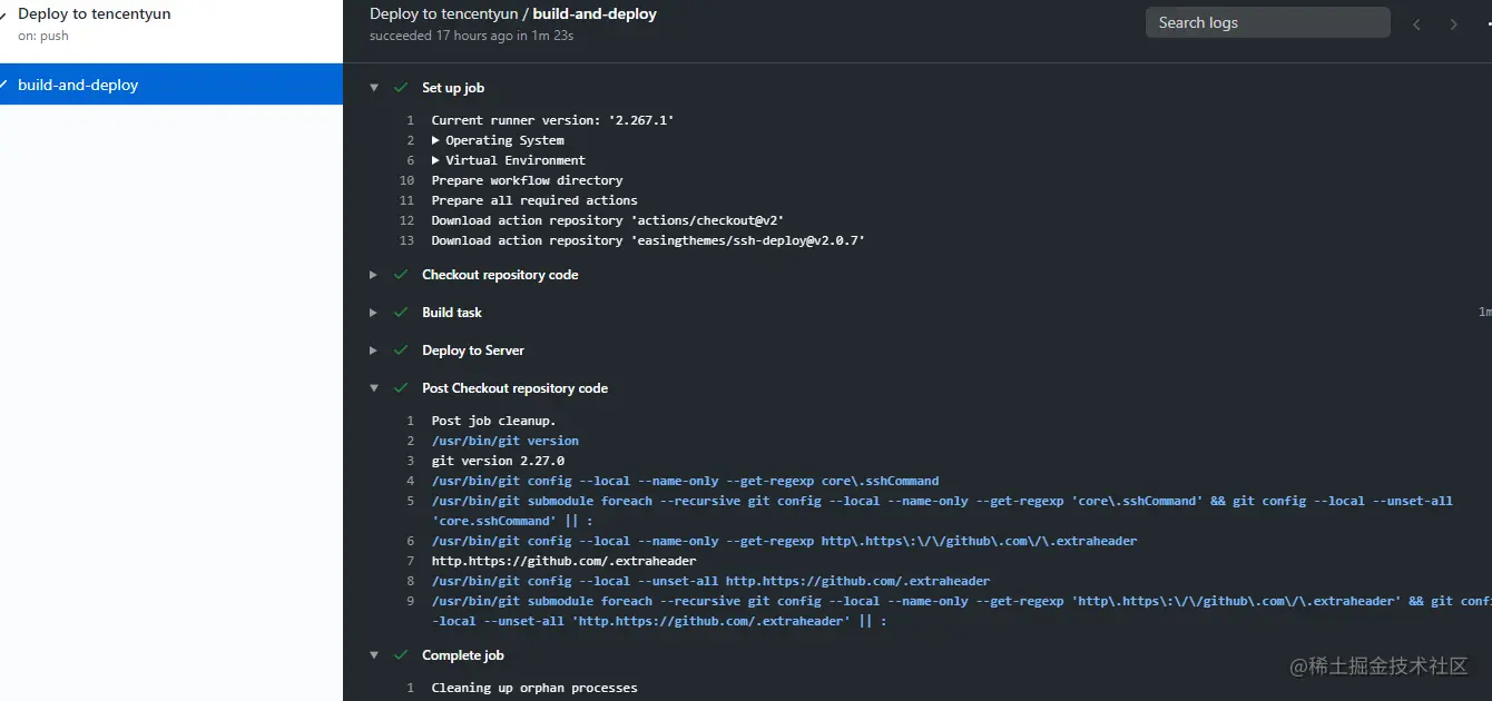 - 此时已经将github actions和服务器建立连接了