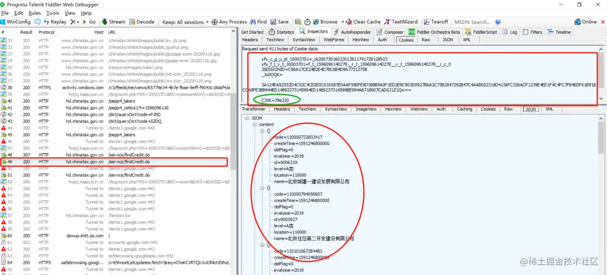 前四步获取到必要的cookie值之后,携带参数post到hd.chinatax.gov.cn/service/fin…: C3VK=79e220值