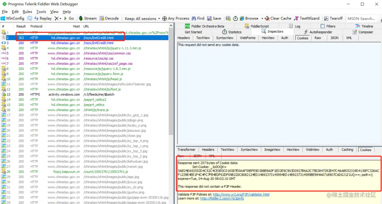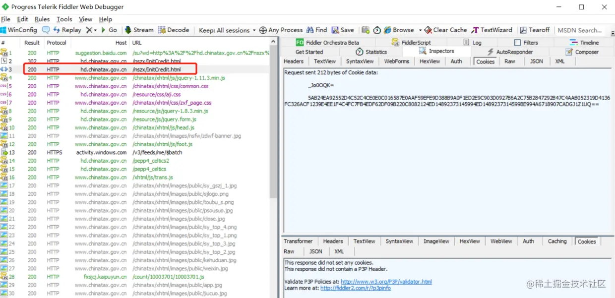 打开抓包工具,清空浏览器记录,访问hd.chinatax.gov.cn/nszx/InitCr…