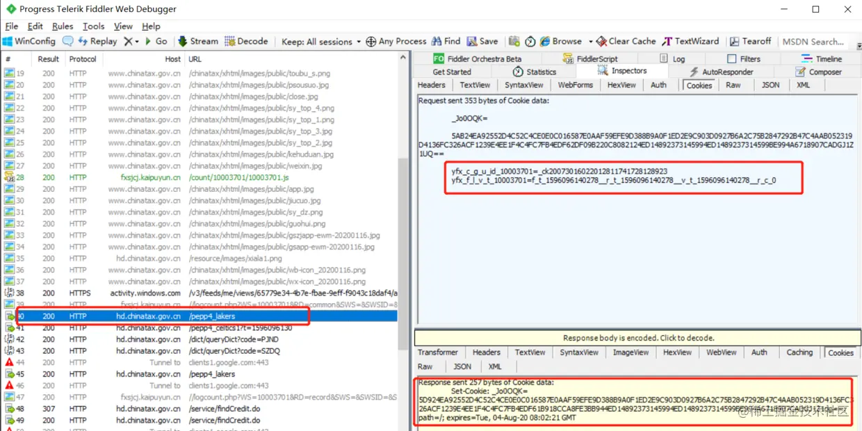 第四个请求发出时带的cookie值中,_Jo0OQK由服务端返回;yfx_c_g_u_id_10003701值为第三个请求服务端set-cookie的yfx_sv_c_g_u_id这个值;yfx_f_l_v_t_10003701这个值固定字符拼接时间戳即可