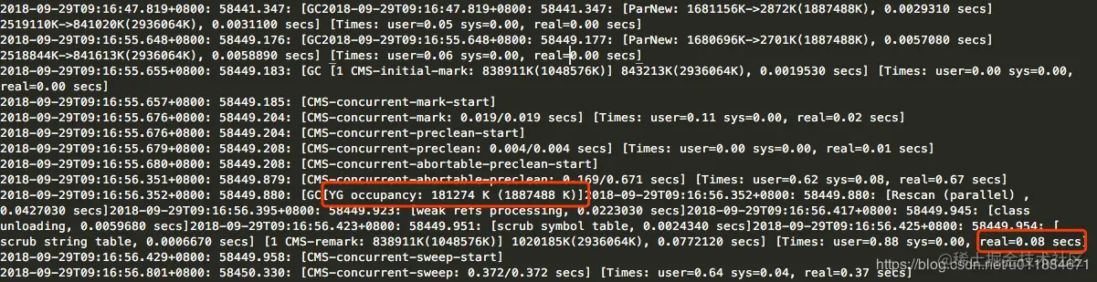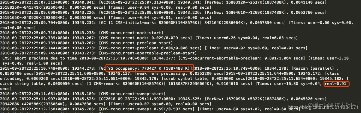 那么CMS GC前的Minor GC停顿时间又如何呢?来看看详细的GC日志。