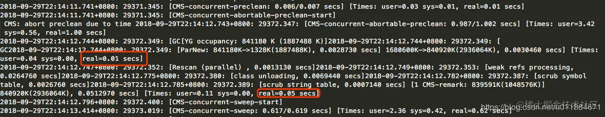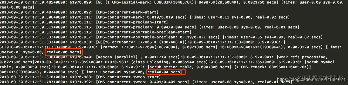 选取其中一个应用分析其GC日志,发现LongGC发生在CMS 的收集阶段。