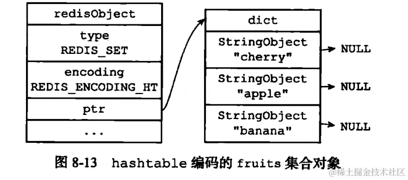 (4)集合对象:编码可以是 intset 或者是 hashtable;