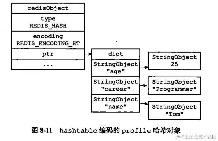 (1)字符串对象:编码可以是 int、raw 或者 embstr。三者具体的区别可以参考 《redis设计与实现(第二版)》一书。
