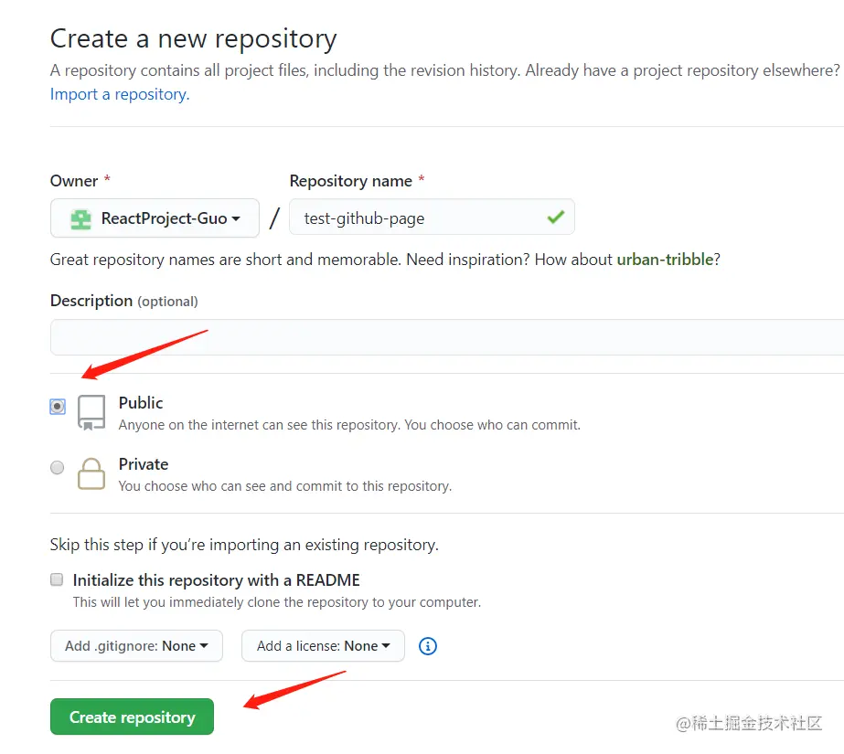 New repository创建新项目. 填入项目基本信息, 点击Create Repository确认. -