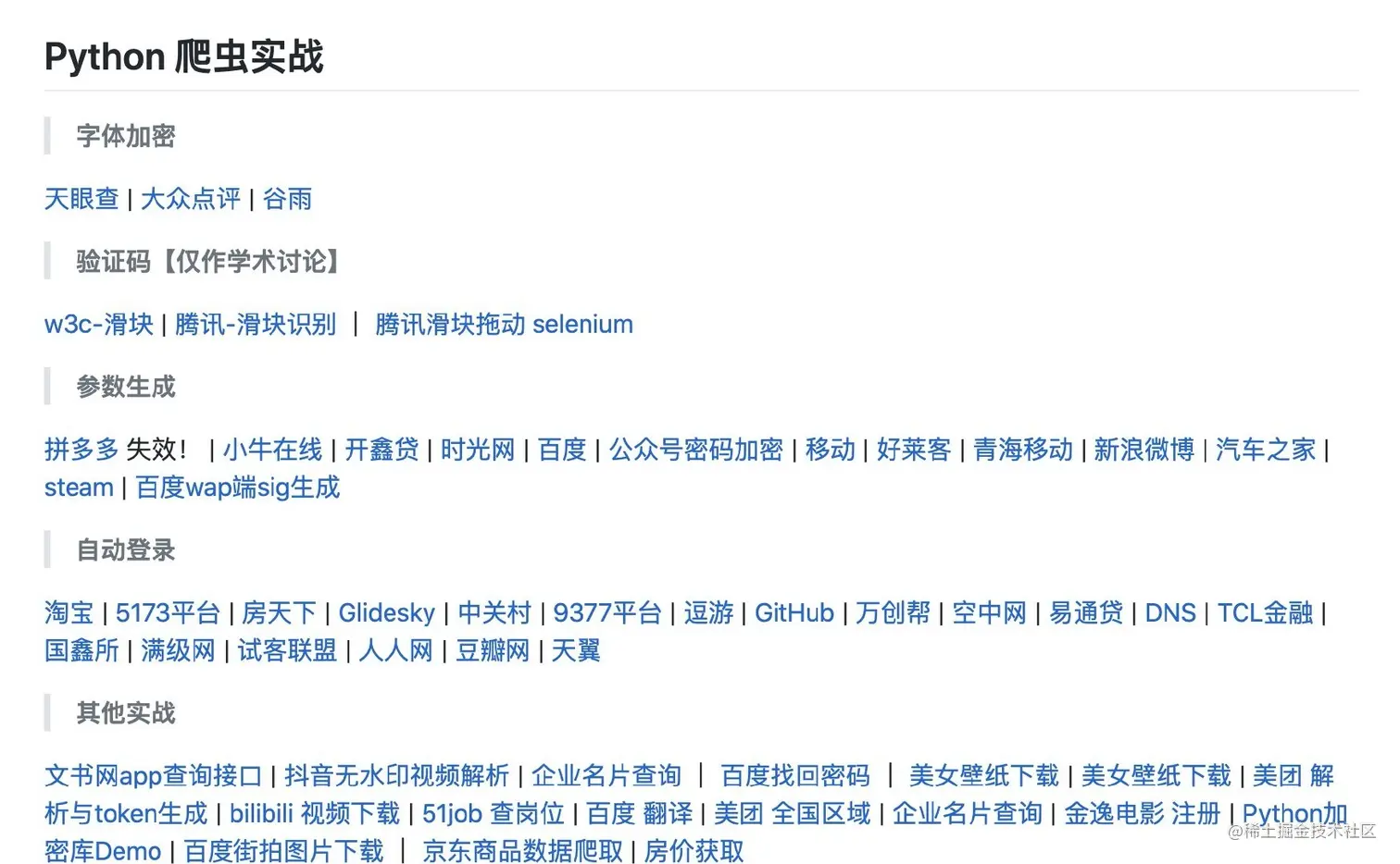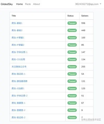 一个很不错的爬虫练习题网,内涵十几个爬虫题目,由浅到深涵盖 ip反爬、js反爬、字体反爬、验证码等题目。安利给大家,博主已撸完。