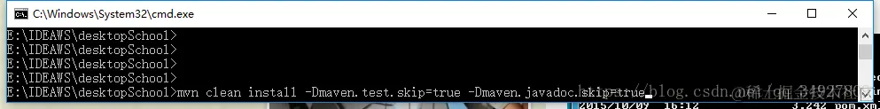 maven打包命令 鹿帆 2020-07-31 245 阅读1分钟 打包到本地:target: cmd\ mvn clean install -Dmaven.test.skip=true -Dmaven.javadoc.skip=true cd到需要打包项目的pom.xml文件下 运行:mvn clean install -Dmaven.test.skip=true -Dmaven.javadoc.skip=true 代码意思代表:Clean 跳过测试 直接install