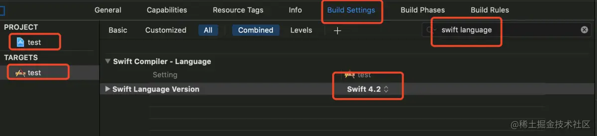 2. 接着将项目的 PROJECT 以及 TARGETS 内的 Swift Language Version 改成可用的版本,我这边 Xcode 版本号10.1,可用的 Swift 版本有3、4、4.2。