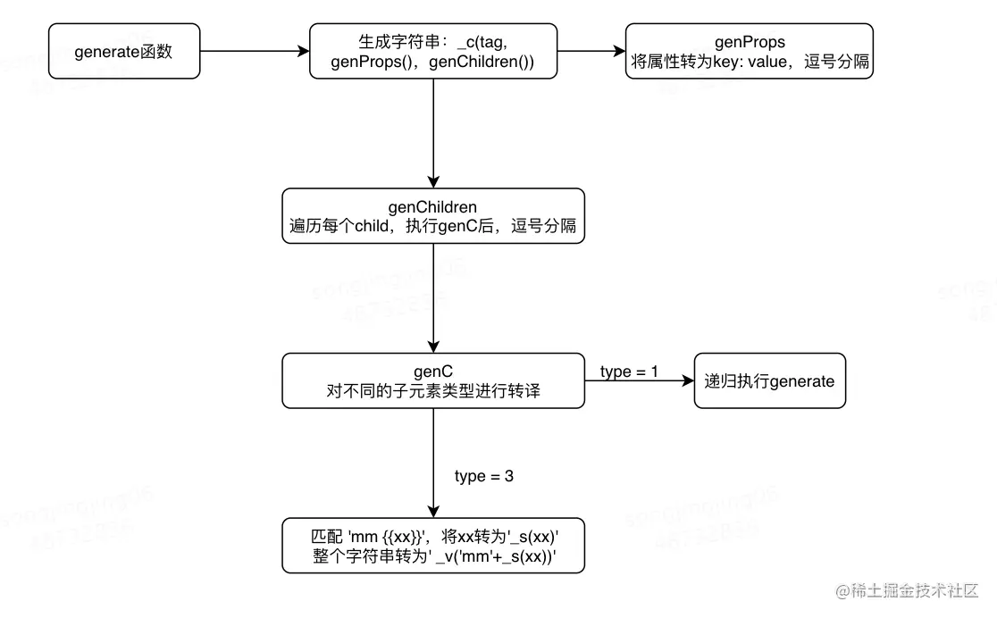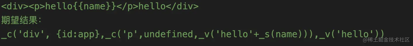 转为render函数是一个字符串拼接的过程。如果是元素,用_c包裹;如果是文本,用_v包裹;如果是变量,用_s包裹