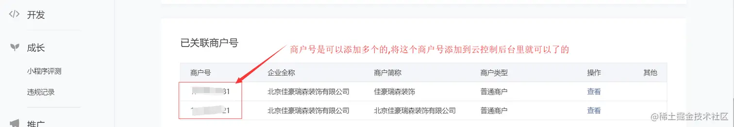 点击添加商户号后进行账号绑定,这时候绑定了微信支付的商户号管理员的微信会收到一条授权确认的模板消息