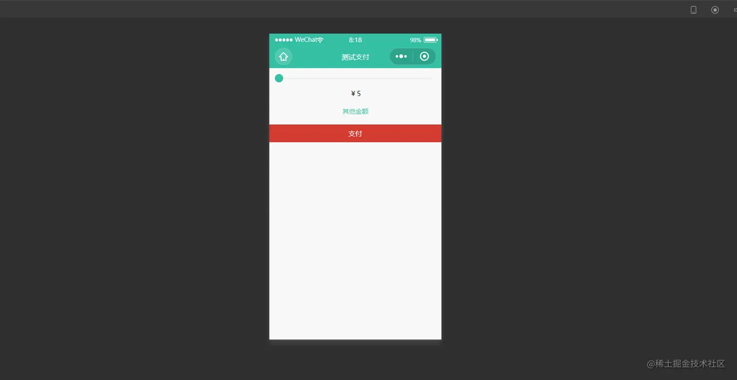 最后就可以在开发者工具的模拟器里点击"发起支付"的按钮了,这时会弹出支付的二维码,扫码支付就可以了;也可以使用预览或真机调试