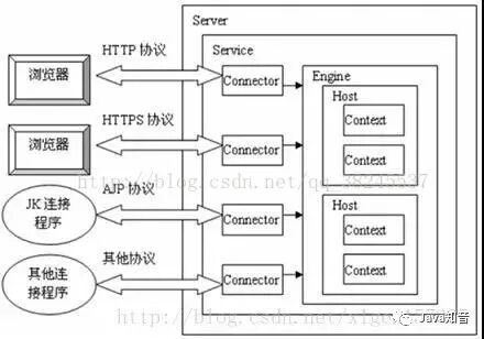 综上所述,一个tomcat只包含一个Server,一个Server可以包含多个Service,一个Service只有一个Container,但有多个Connector,这样一个服务可以处理多个连接。