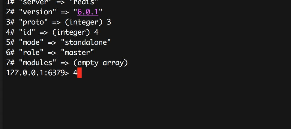 ➜ ~ telnet localhost 6379Trying ::1...Connected to localhost.Escape character is '^]'.hello 3%7$6server$5redis$7version$56.0.1......