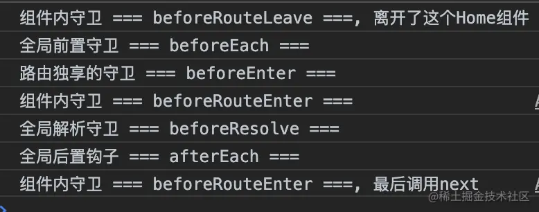 PS: 注意:beforeRouteUpdate 这里并未触发,因为它是在当前路由改变,但是该组件被复用时调用,动态参数的路径 /foo/:id,在 /foo/1 和 /foo/2 之间跳转的时候触发的!