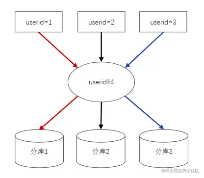 相信前面的介绍已经说明了水平拆分的必要性,现在的问题就是如何拆分,按何种规则将不同的数据归类到不同的mysql库/mysql表/redis机器上。下面我们以userid作为key为例。