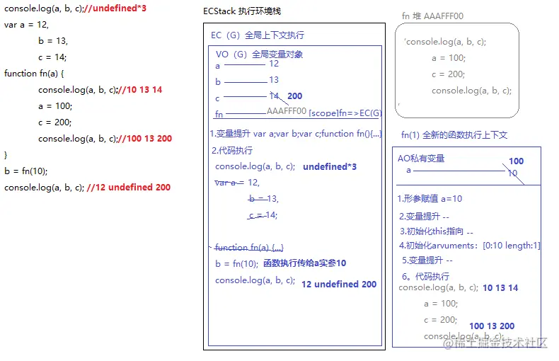 var a=10,b=11,c=12; //全局a=10 b=11 c=12
