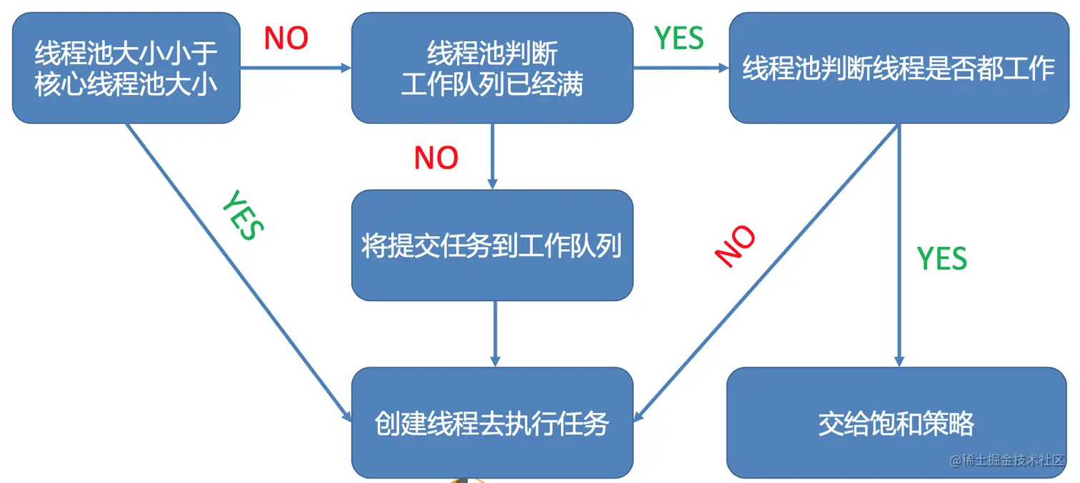 由图可以知道,先判断线程池大小是否小于核心线程池大小