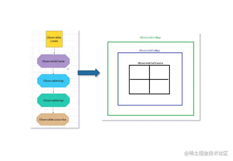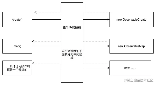代码没啥好说的,很简单,我们在 .create 的时候会给我们返回一个new ObservableCreate,在 .map的时候返回的是new ObservableMap ....我们需要的就是在这个过程中拦截。如图