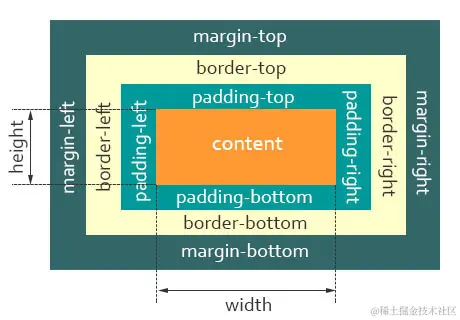 元素框的总高度 = 元素(element)的height + padding的上下边距的值 + margin的上下边距的值 + border的上下宽度。