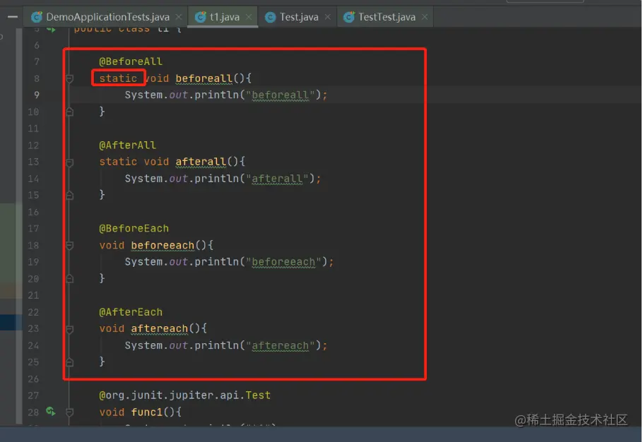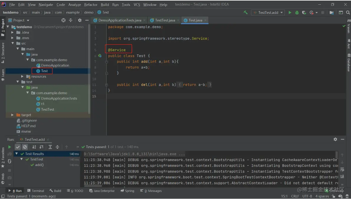 Java 单元测试你造吗? arjun 2020-08-01 207 阅读1分钟 视频教程:www.bilibili.com/video/BV1SJ… IDEA自动导入测试 按ctrl+shift+t –> create new test @Test+Assertions @BeforeEach @AfterEach @BeforeAll @AfterAll @Service + @SpringBootTest+ @AutoWired (SpringBoot框架可用) @ MockBean @SpyBean