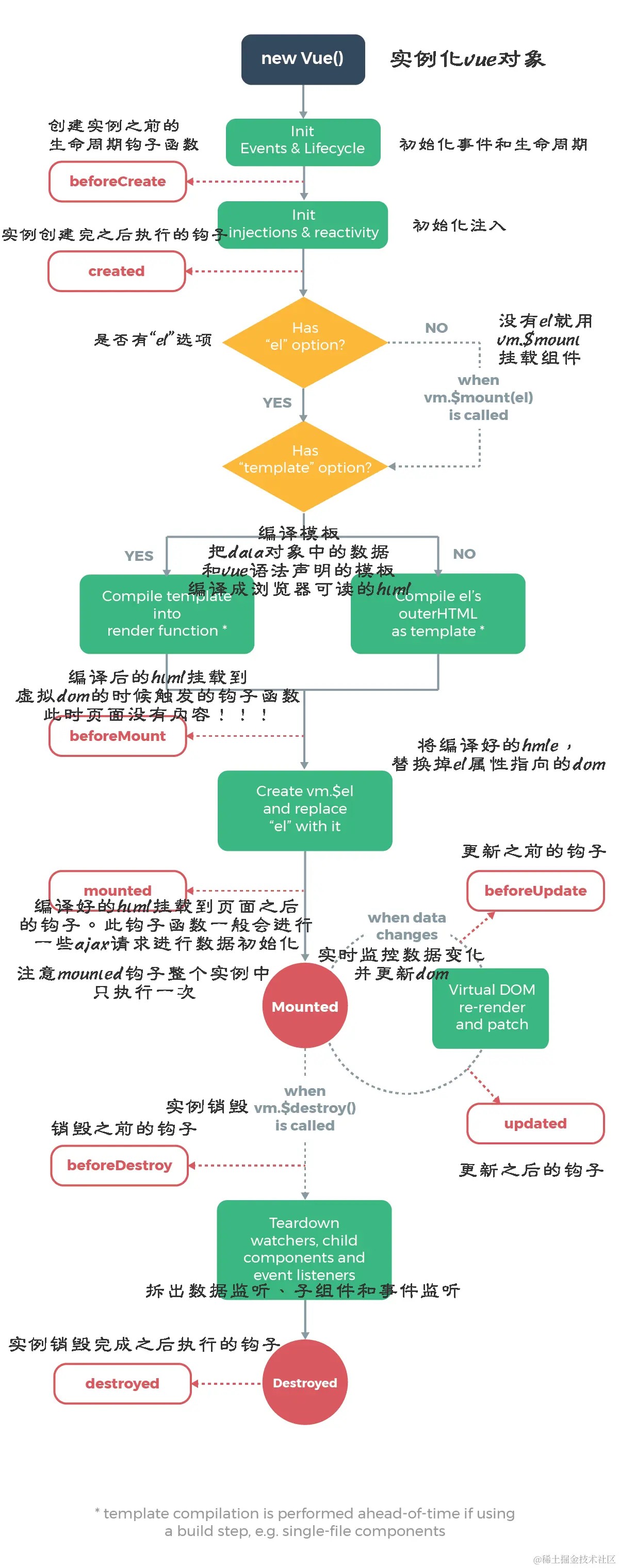 - mounted:mounted 阶段,一般是用于发起后端请求,获取数据,配合路由钩子做一些事情。