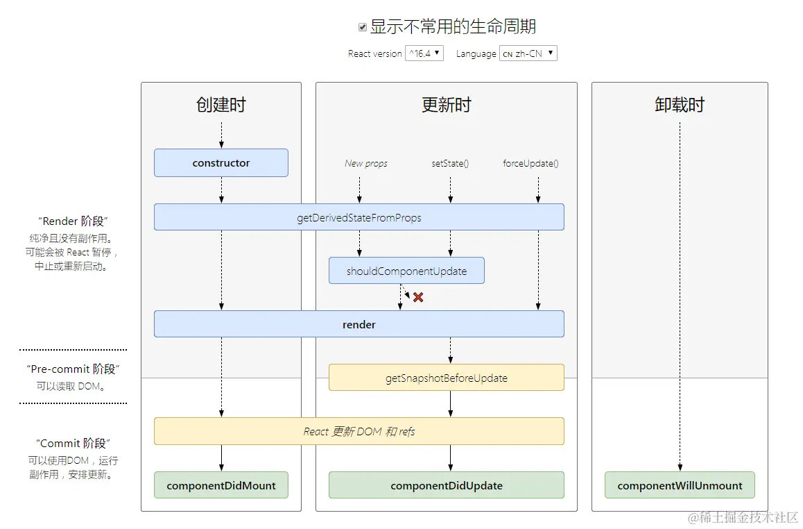 同时在React v17将彻底废除这些生命周期函数。这可能是想彻底断了程序员在这些生命周期函数里做些不该做事情的念想。