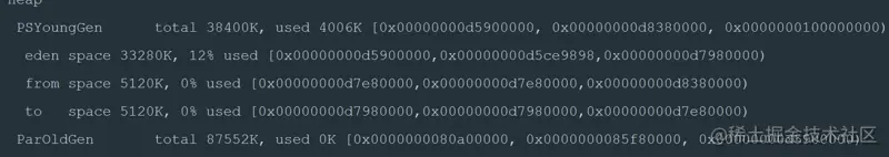 注意到PSYoungGen和ParOldGen这两个单词,从控制台的信息我们可以看出堆中的区域划分