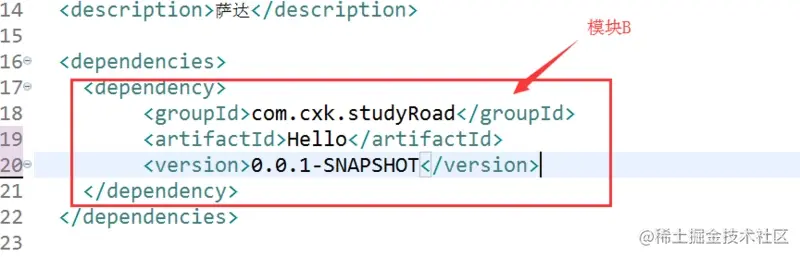 ③ 在父项目中确定子模块的位置 ../studyDenpen ../Hello module标签中填的是相对于父项目的位置。 这也就是聚合了.
