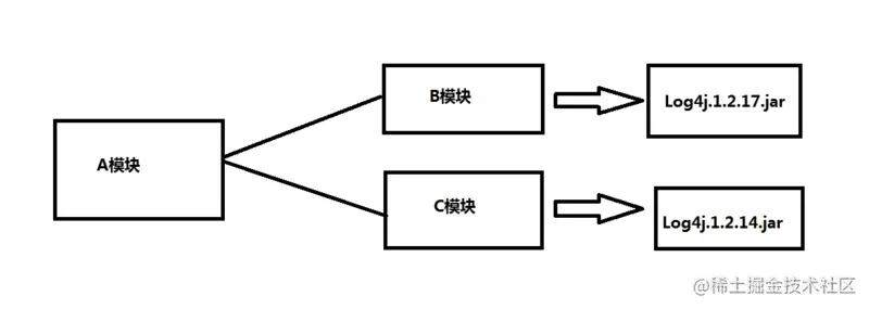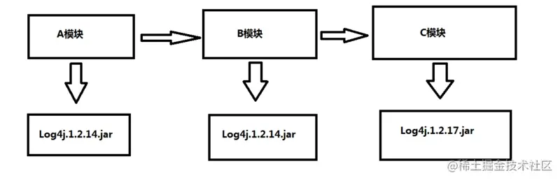 模块A引入模块B,就会顺带把这两个jar包一并引入。