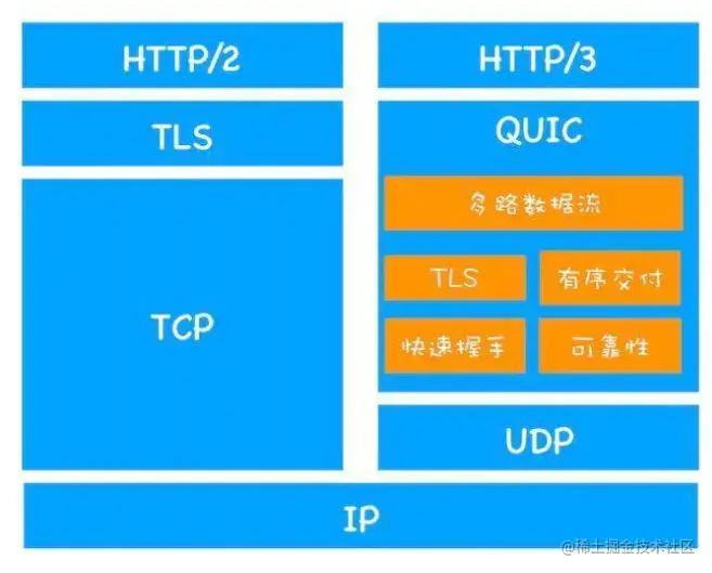 在UDP层上面增加了QUIC层,在这一层里面做了很多逻辑,目的是解决UDP本身自带的缺点,可以说http3.0是一个很完美的协议版本,这里有一篇文章介绍http3.0的文章,大家可以深入学习