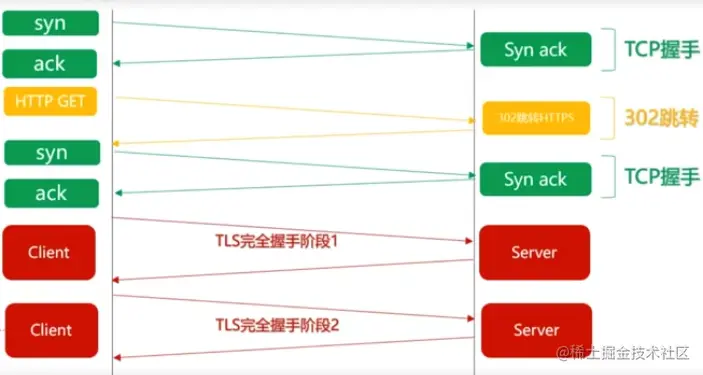 - HTPPS请求的时候第一个RTT就是正常的TCP三次握手的过程,这个前提是没有输入https://,下面会说