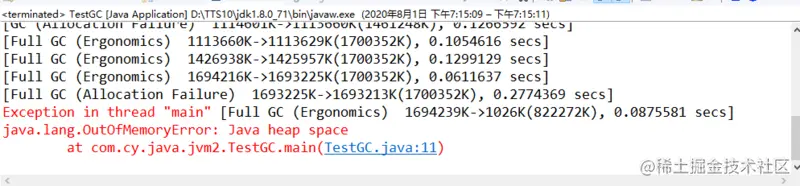 由于创建的大对象存放于list集合中,所以它的生命周期是整个main方法,当存放过多时,则会内存溢出