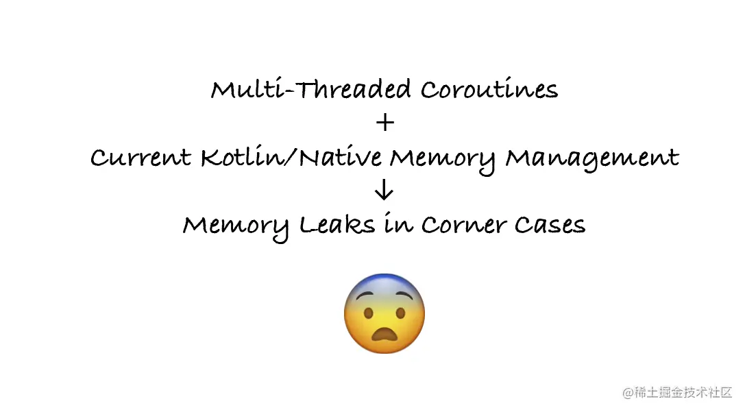 当我们试图为Kotlin/Native实现多线程kotlinx.coroutines时,我们遇到了特别的挑战。同步基元必须在内部共享可突变的状态,这在Kotlin/Native中是通过特殊的原子引用来支持的。然而现有的内存管理算法并没有通过这种引用来跟踪循环。即使经过大量的工作,在某些并发执行场景下,它仍然存在内存泄漏的问题,而我们并没有明确的解决方案来解决这些问题。